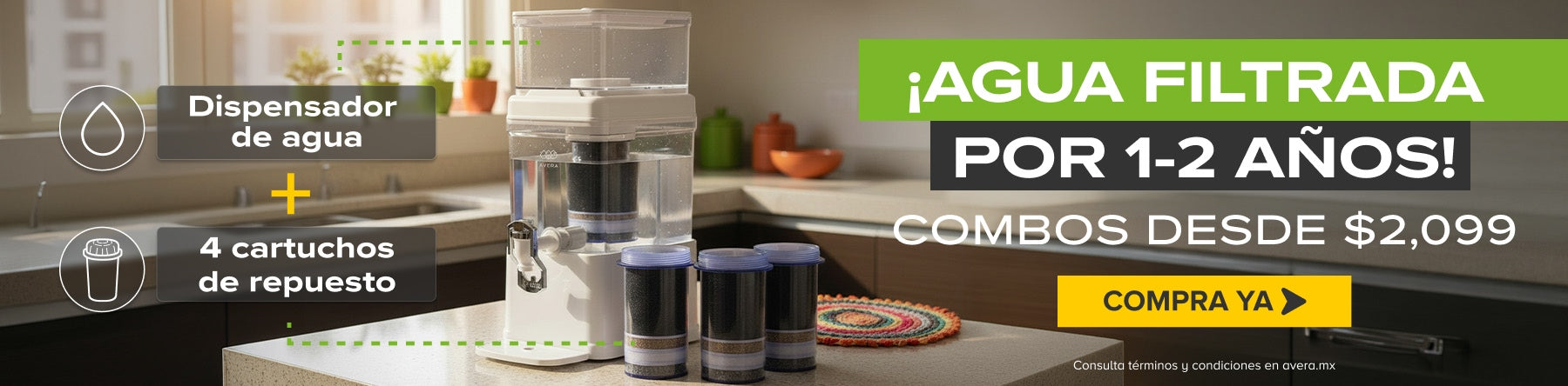 Combo Filtro dispensador de agua 5 L con 2 cartuchos de repuesto - 1 año de rendimiento