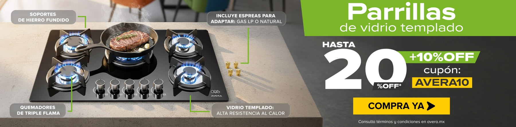 ¡Solo hay 2 en stock!Aprovecha nuestro combo de parrilla empotrable y campana de extracción ideal para tu cocina, listos para ser instalados como cada producto Avera co...