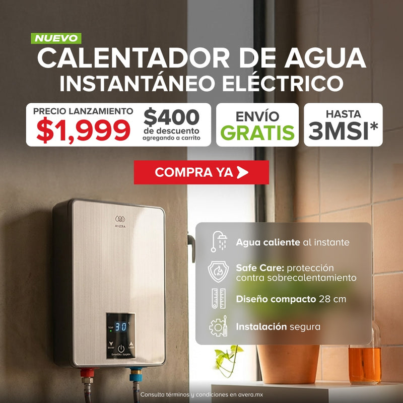 en stockSi vives en un espacio pequeño o simplemente quieres decirle adiós a las instalaciones de gas, el Calentador Eléctrico Instantáneo AVERA CE01 es la...