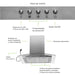 Campana de cocina de isla curva 76 cm acero inoxidable y vidrio templado