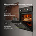 - Ventilador (Convección) que asegura que el calor llegue a cada rincón de los 58 litros.