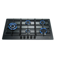 Parrilla de gas 5 quemadores 90 cm en vidrio templado premium - negro