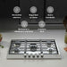 Combo Parrilla de gas 5 quemadores + Campana pared con cristal templado 76 cm